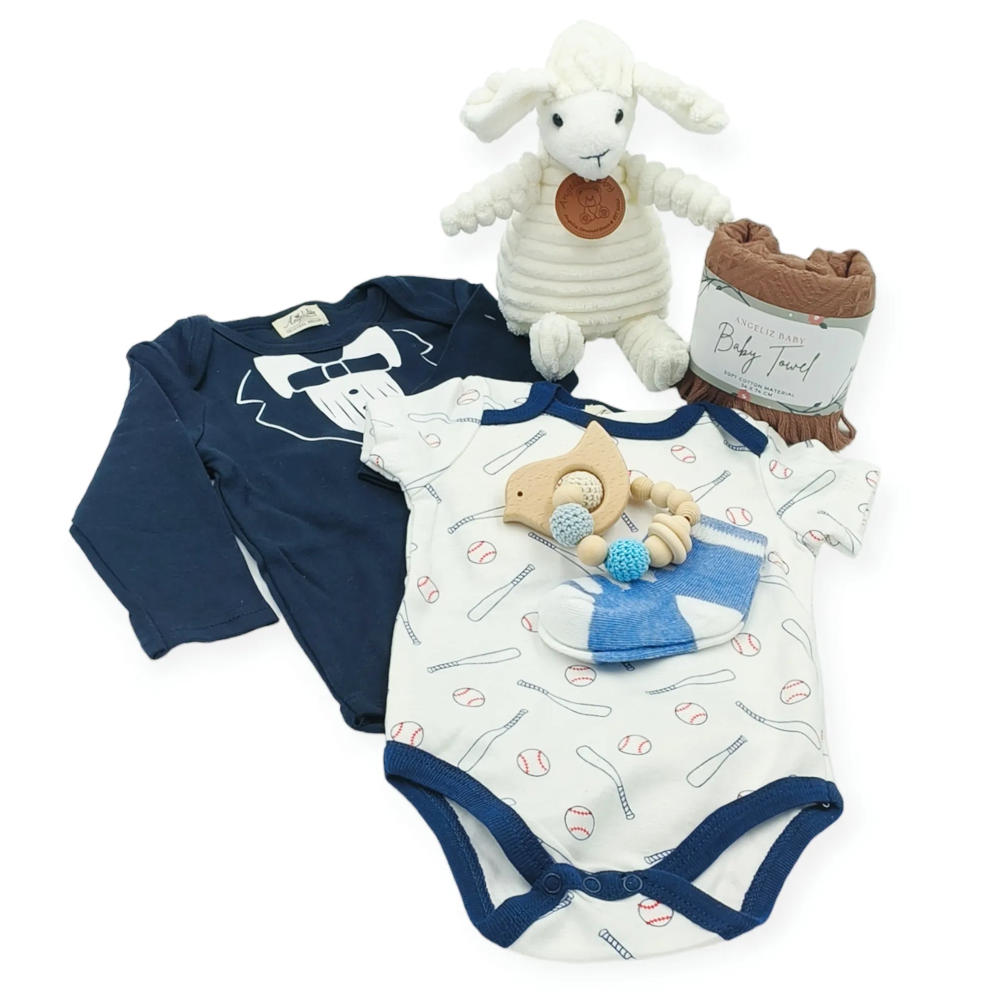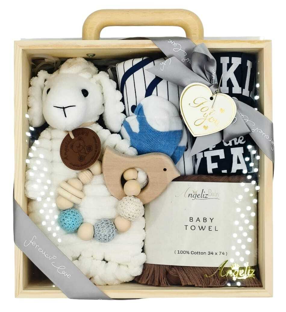 Angeliz Baby Gift Lovely Sheep Wooden Box Hamper Set 8 pcs- Boy