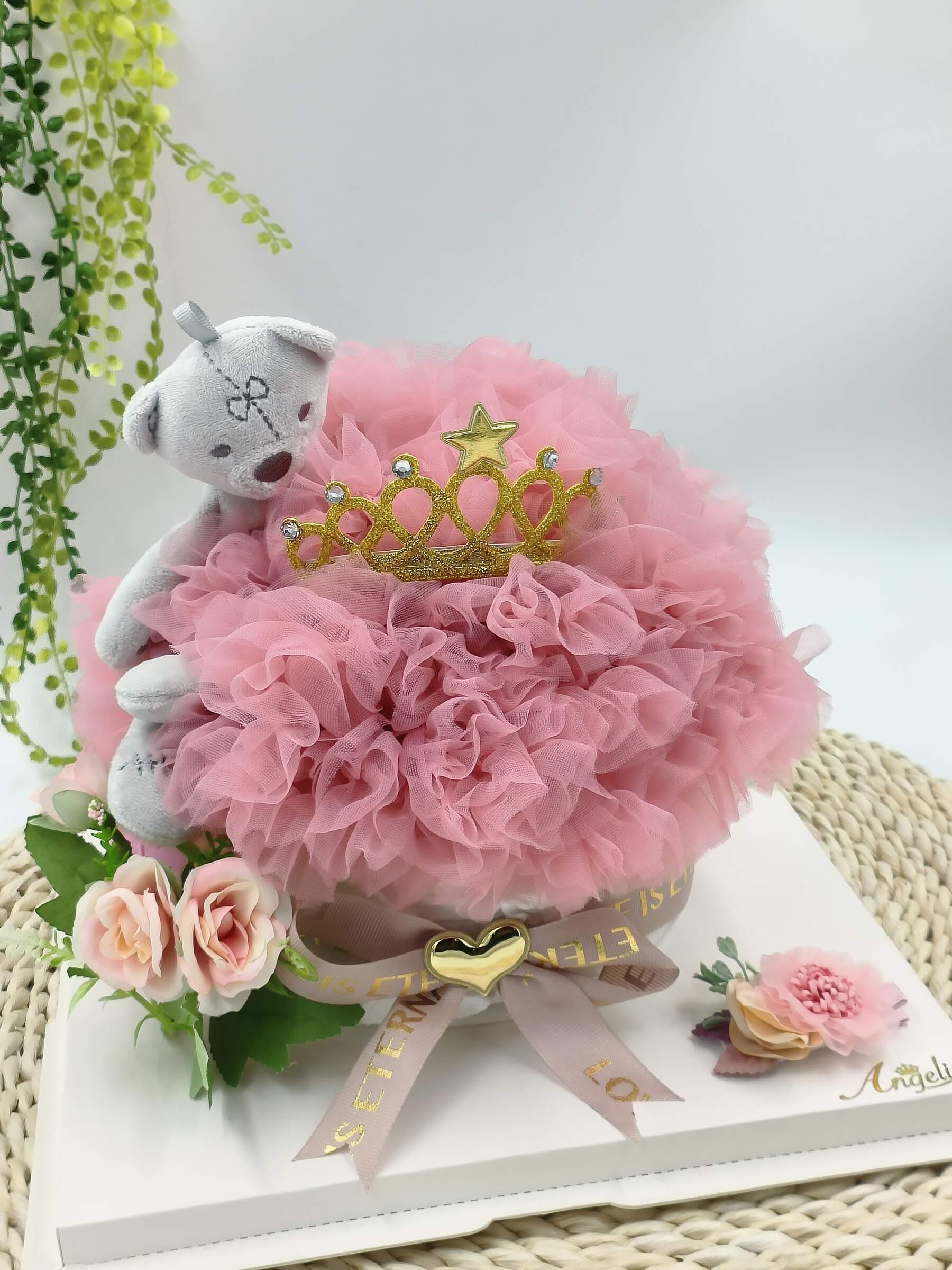 Packed in a PET transparent box with matching ribbon & deco tag.