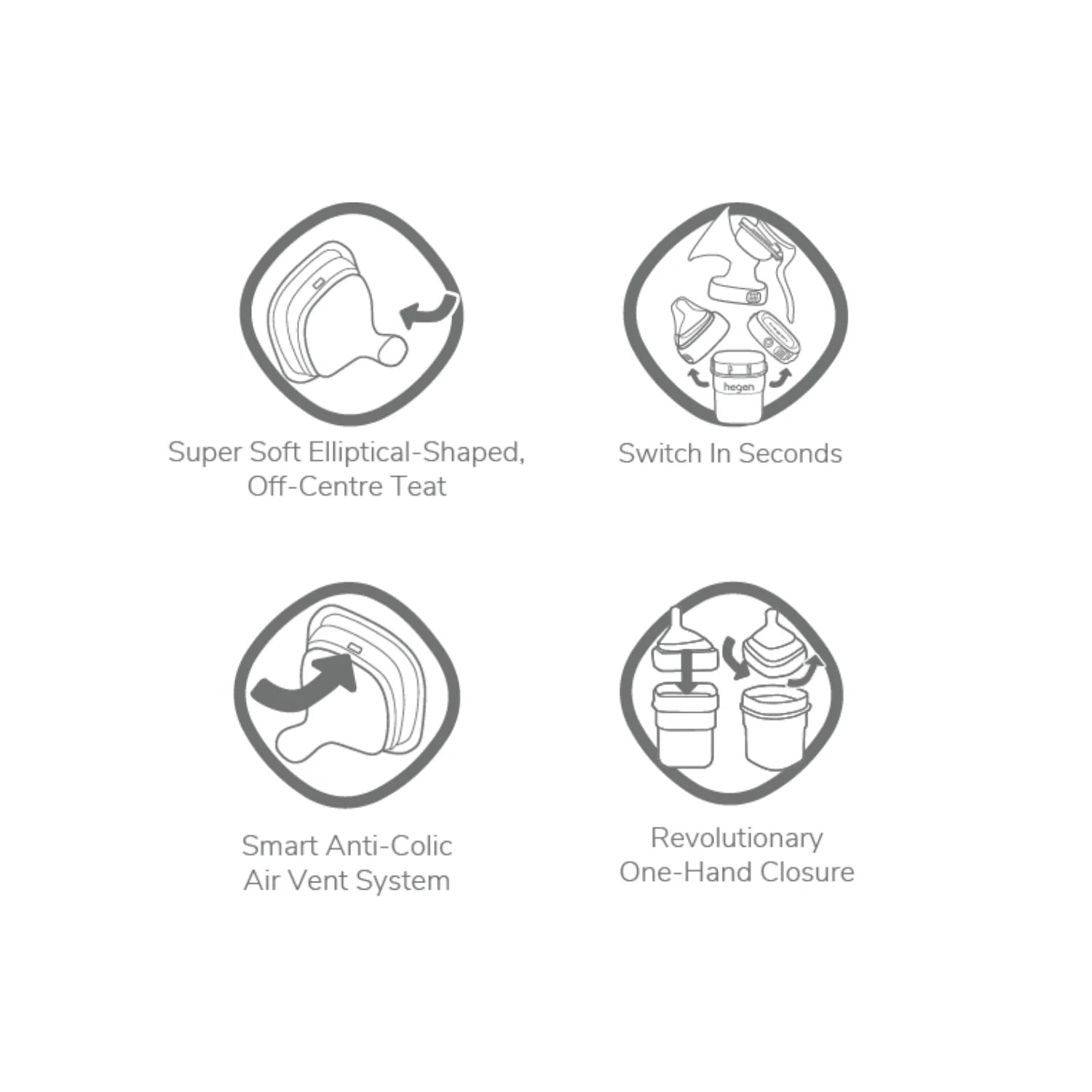 Hegen’s 150ml/5oz Feeding Bottle is the perfect size for moms who are latching and pumping to regulate their milk flow. It comes with a Slow Flow teat that is ideal from the first month as it mimics the initial slow flow of breast milk – up to 3 months old.