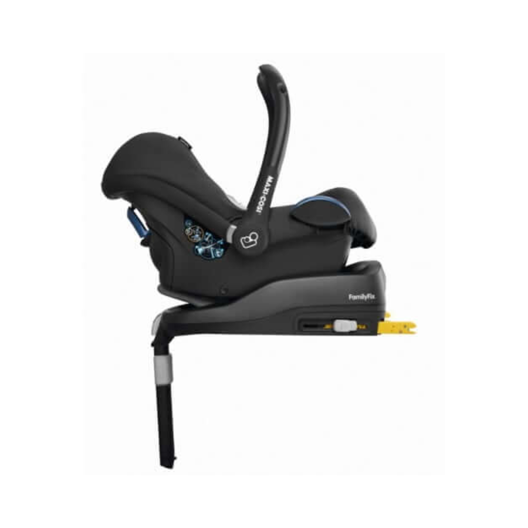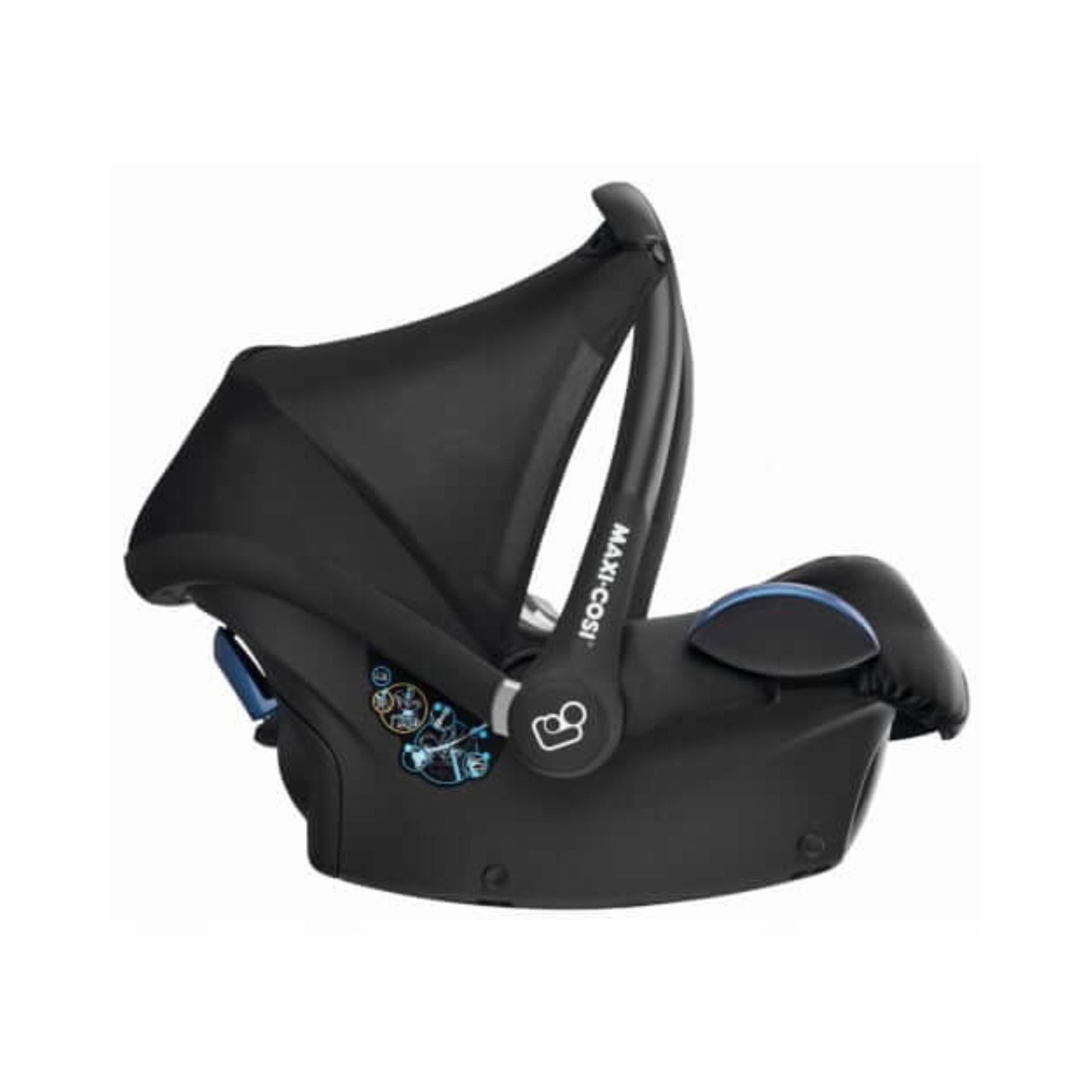 The Maxi-Cosi CabrioFix car seat is lightweight and can be quickly and easily transferred from the car to any Maxi-Cosi or Quinny stroller. Enhanced comfort is provided by extra padding and a seat size reducer for newborns, while the Side Protection System optimizes overall safety. What’s more, CabrioFix can be secured with either the car seat belt or the Click & Go Maxi-Cosi base units.