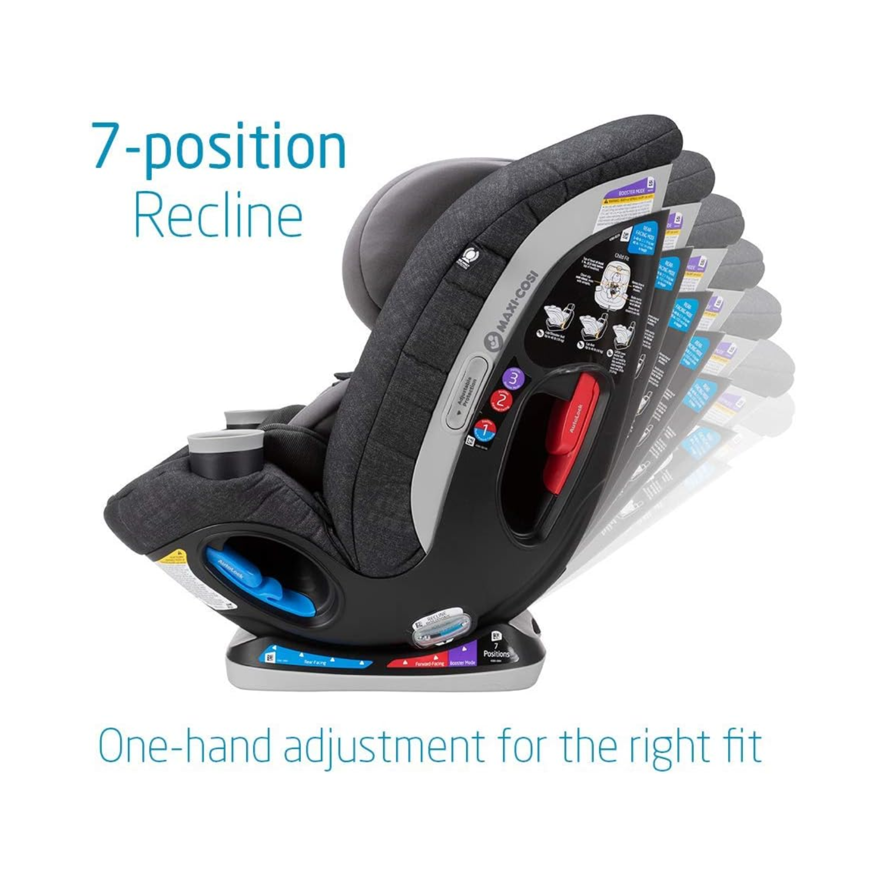 - One-handed RECLINE AND EASY ADJUST: 7-positions to choose from; HideAway seat belt harness makes it a breeze to transform into a booster car seat.