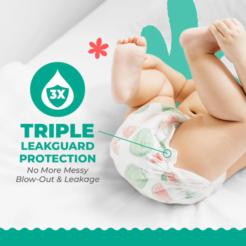 Advanced double leakguards & super elastic waistband to prevent blowout and leakages