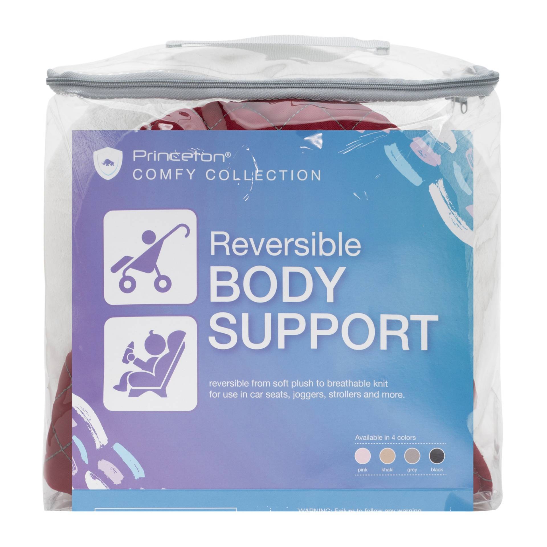 Princeton Body Support Pillow crafted with soft velour on one side and breathable embroidered knit on the other, our support pillow ensures year-round comfort for your baby. Adjustable and detachable, the head support grows with your little one.
