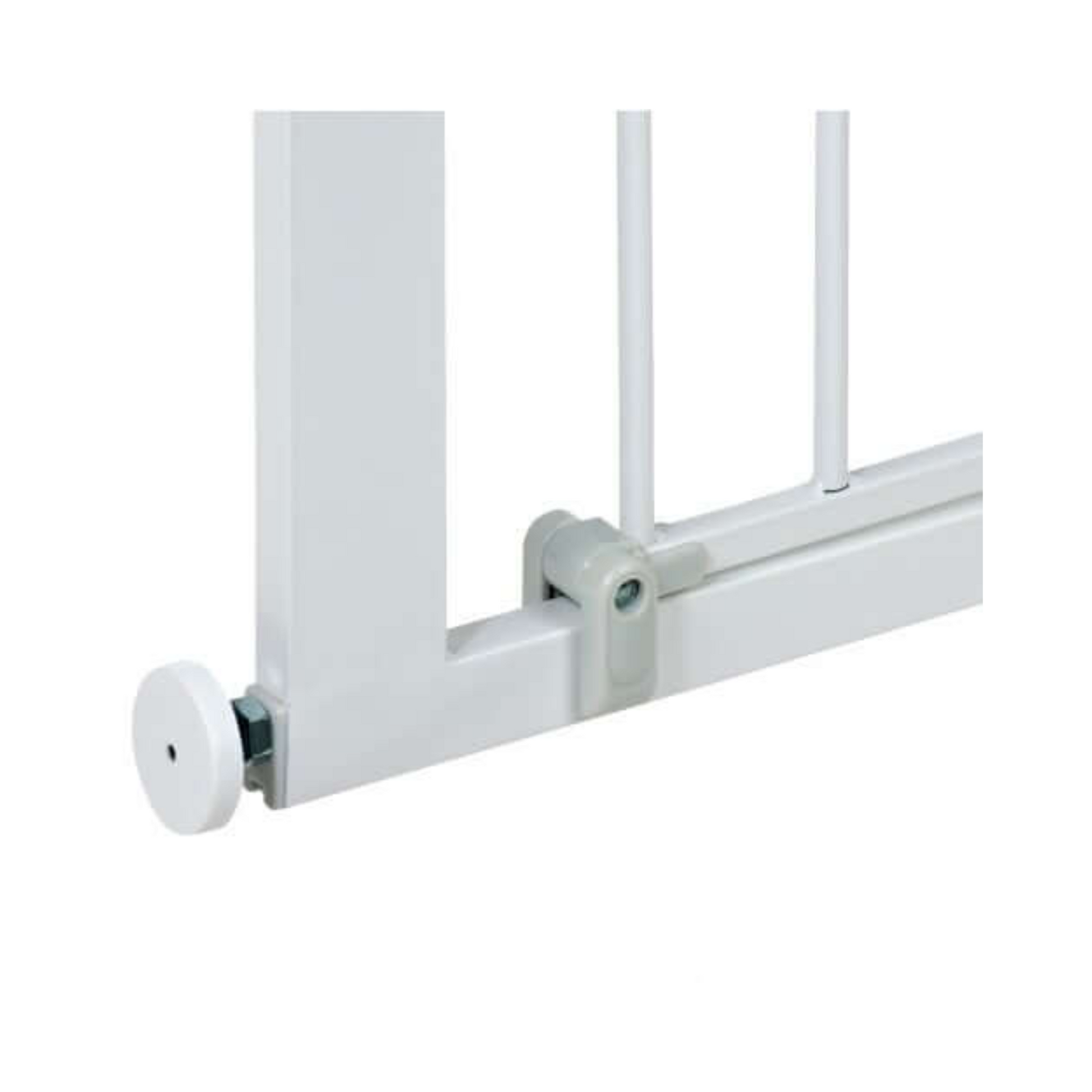 This stair gate is suitable for openings between 73cm and 80cm but can be extended up to 136cm with separately available extensions.