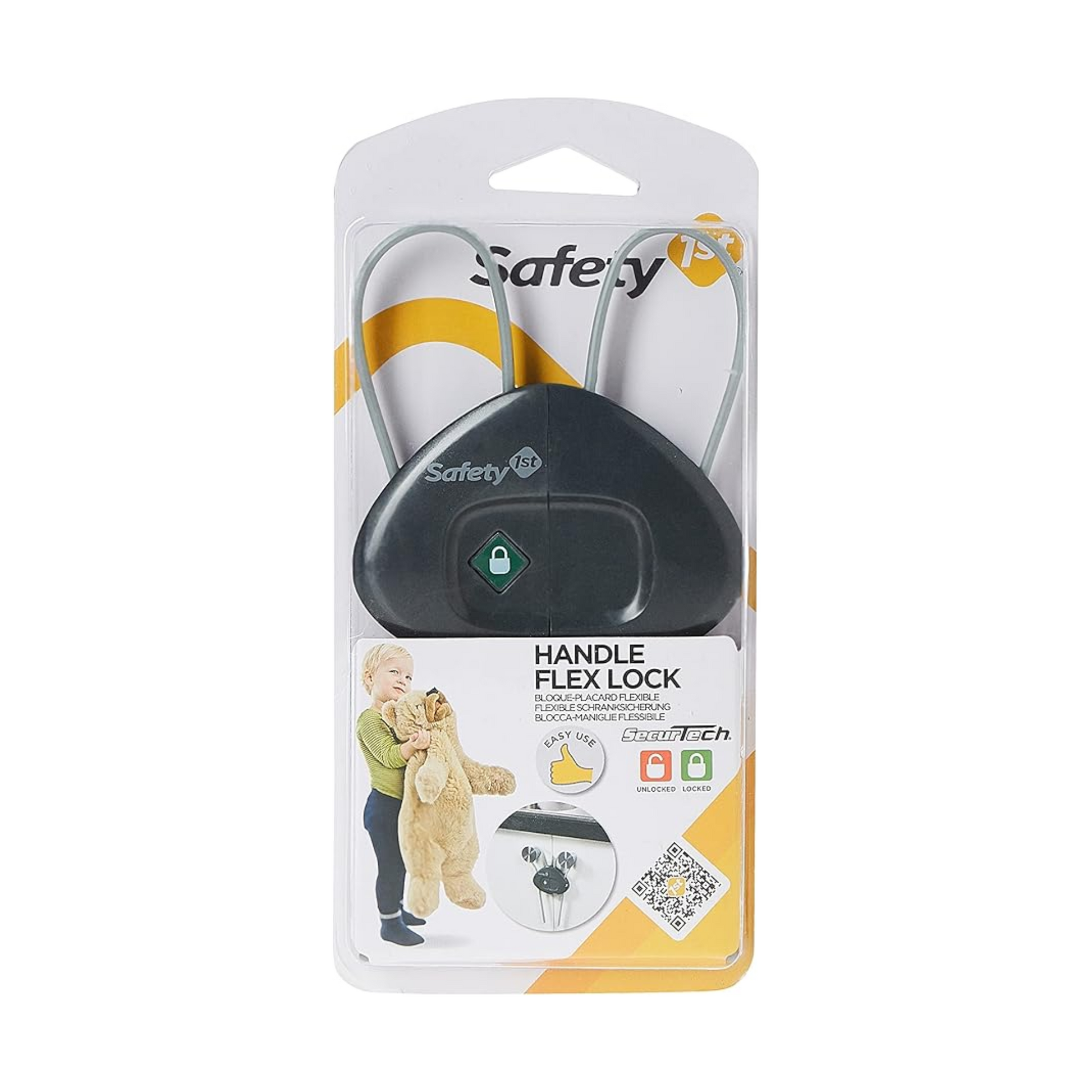 Handle Flex Lock is a very easy to install and use home safety essential that keeps children from opening cabinets. The SecureTech visual indicator guarantees that the device has been correctly locked. Adjustable pins means it fits any kind of cupboards. The lock has a quick release double action and can be used with any type of doors, both with handles or doorknobs. Stays on door knobs/handles when open. 2 colors to fit all contemporary interiors.
