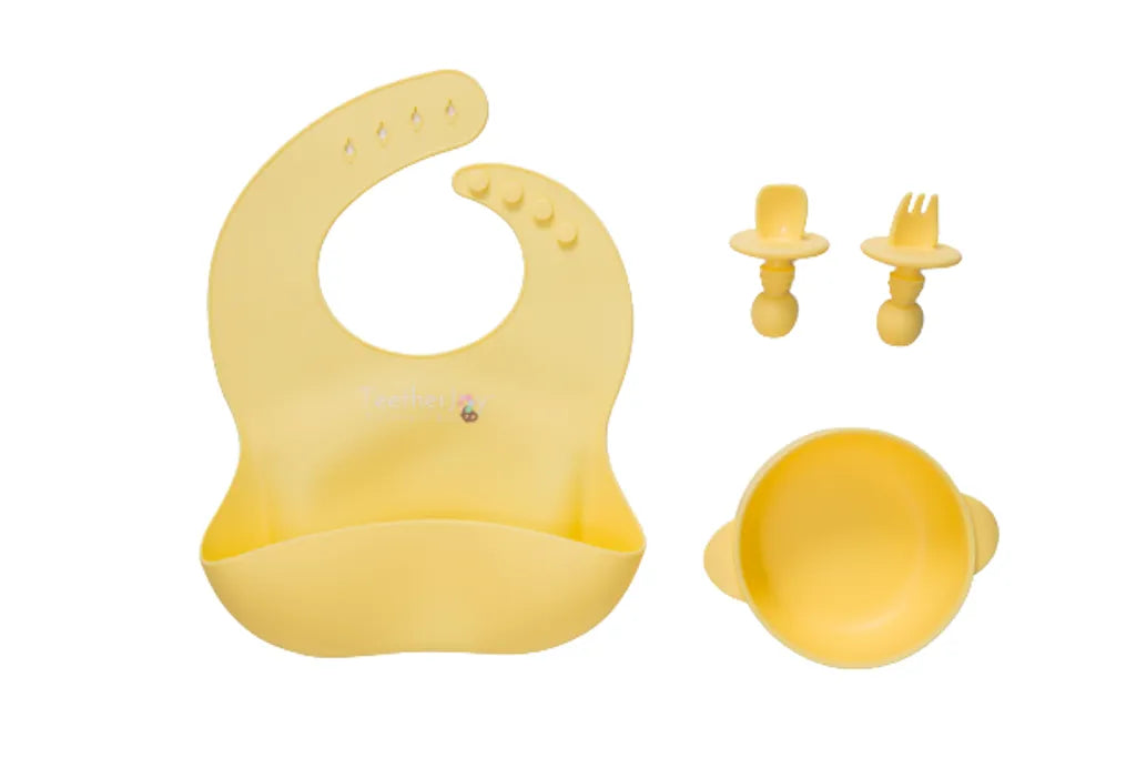 Yay baby is ready for solids! Keep your little one feeling comfy and clean with our pastel collection of silicone baby feeding sets. TeetherJoy's baby feeding set is made from food-grade silicone, BPA, and phthalate-free. Our silicone baby feeding set makes mealtimes much E A S I E R and S T Y L I S H at the same time!